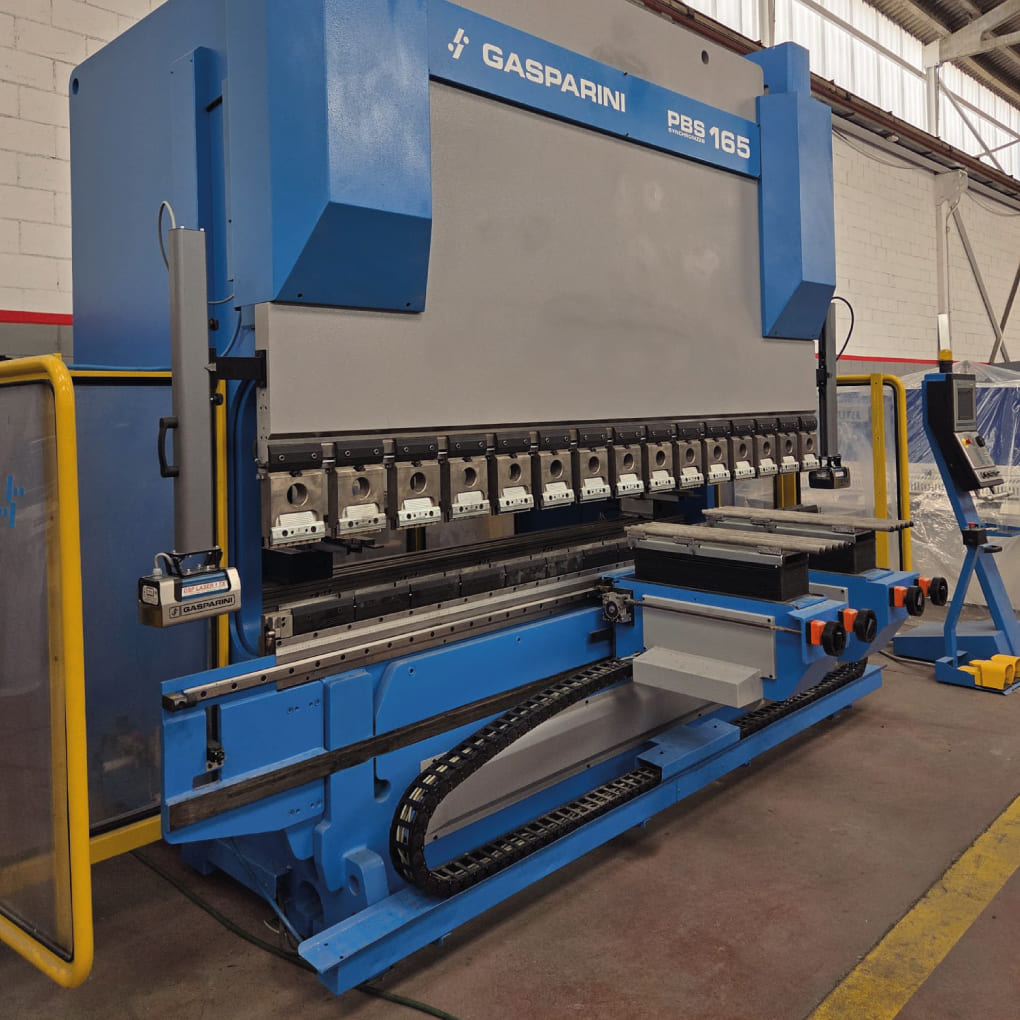 Plegadora Gasparini modelo PBS 165 de 3.000 mm de longitud de plegado con 160 Tn. de fuerza. Fabricada en 2.004 y con RETROFIT en 2026. Incluye 2 acompañadores de chapa.